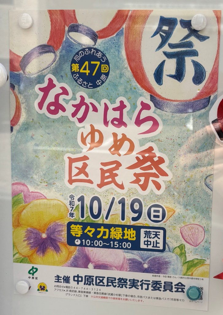 10/19に第47回なかはらゆめ区民祭が等々力緑地で開催されるようです。